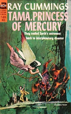 Guy and Tama's triumph at the end of Tama of the Light Country is about to turn to disaster, for barbarian hoards from Mercury's dark side have seized spaceships, followed them, and even now are sweeping down on the unsuspecting Earth. To prevent the people of the twilight belt from joining the battle on our planet's side, the barbarian leaders' plan is to kidnap Tama and use her as a hostage. And, Tama is alone, pirouetting through Earth's evening sky.