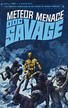 Doc Savage and his fabulous crew journey to Tibet in pursuit of their most dangerous adversary, the evil genius Mo-Gwei. Battling against overwhelming odds, they try to stop him from conquering the world with a diabolical machine known as the Blue Meteor, a screaming blue visitor from space that turns men into raving animals!